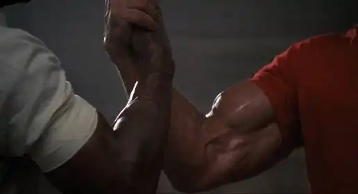 Одна из самых очевидных и часто цитируемых «пасхалок» — фирменная фраза «Get to the chopper!», произнесённая Эшером в исполнении Арнольда Шварценеггера. Эта сцена стала почти меметичной: короткая, громкая и идеально подходящая под архетипический образ героя 80-х. Для зрителя 1987 года фраза работала не только в контексте сцены, но и как отсылка к той же культуре боевиков и к экранному образу самого Шварценеггера — сильный, прагматичный, немного комичный воин, у которого «все под контролем». Со временем эта реплика превратилась в один из символов фильма и неоднократно цитировалась и пародировалась в самых разных медиа, что само по себе стало мета-отсылкой к эпохе и стилю.